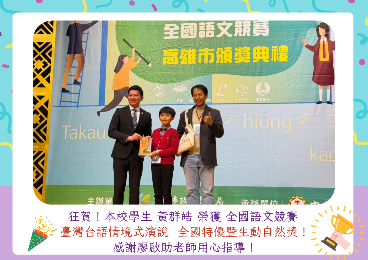 學務處:賀!本校徐晨熙同學參加「2025卓越杯閱讀全國競賽」榮獲佳績